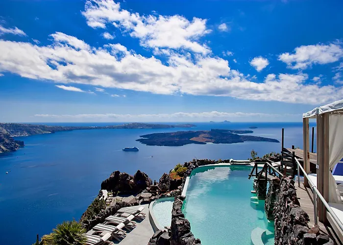 Das Hotel befindet sich im friedlichen Teil von Imerovigli, nur 600 Meter vom Skaros-Felsen. Das Museum des vorgeschichtlichen Thira liegt unter anderem in etwa 30 Gehminuten Entfernung. Es liegt in der Nähe von der Anastasi-Kirche. Das Honeymoon Petra Villas Imerovigli ist 550 Meter von der Bushaltestelle lost entfernt, während der Vulkan von Santorini ungefähr 3 Kilometer von hier ist.